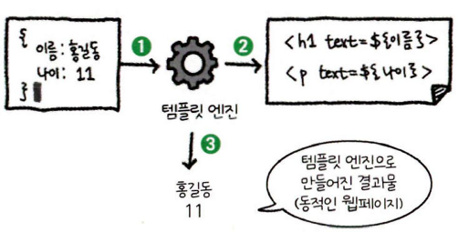 다만 HTML과 함께 템플릿 엔진을 위한 문법을 살짝 섞어 사용해야 한다.