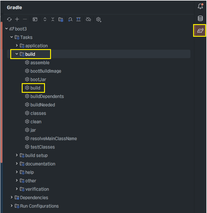 IntelliJ 우측 상단의 그래들 버튼 누르고 빌드 하면