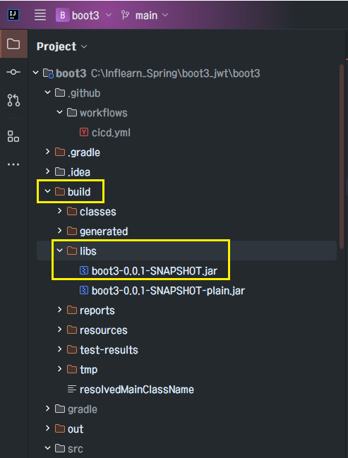 build/libs 에 jar 파일이 생성된다.