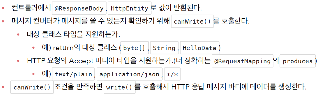 * Java 객체를 HTTP 응답 메시지로 변환하는 작업을 수행할 수 있습니다.