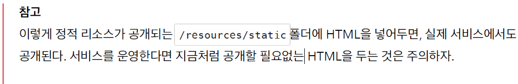 참고로 /resources/static 에 넣어두었기 때문에 스프링 부트가 정적 리소스를 제공한다.