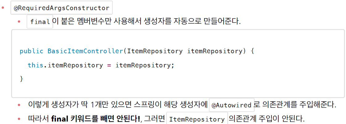 컨트롤러 로직은 itemRepository에서 모든 상품을 조회한 다음에 모델에 담는다. 그리고 뷰 템플릿을 호출한다.