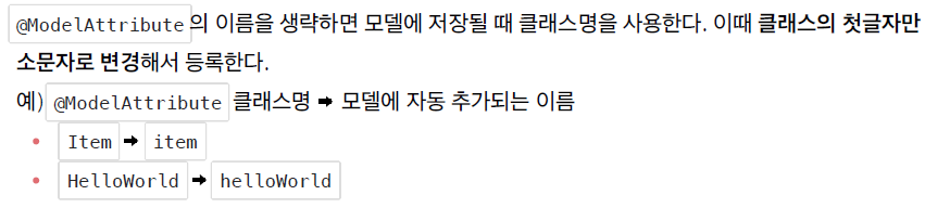 * 생략시 model에 저장되는 name은 클래스명 첫글자만 소문자로 등록 Item -> item