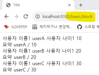요약 <span th:text="${user.username} + ' / ' + ${user.age}"></span>