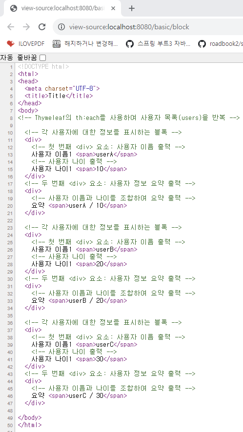 <th:block> 은 HTML 태그가 아닌 타임리프의 유일한 자체 태그다.