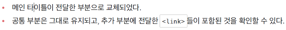 이 부분은 template/layout/base 템플릿에서 common_header 템플릿 프래그먼트를 현재 페이지의 <head>로 대체한다. - ~{::title}은 현재 페이지의 타이틀을 의미하며, "메인 타이틀"로 설정된다.