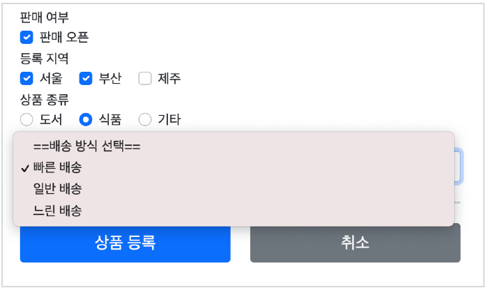 타임리프를 사용해서 폼에서 체크박스, 라디오 버튼, 셀렉트 박스를 편리하게 사용하는 방법을 학습하기 위한 작업