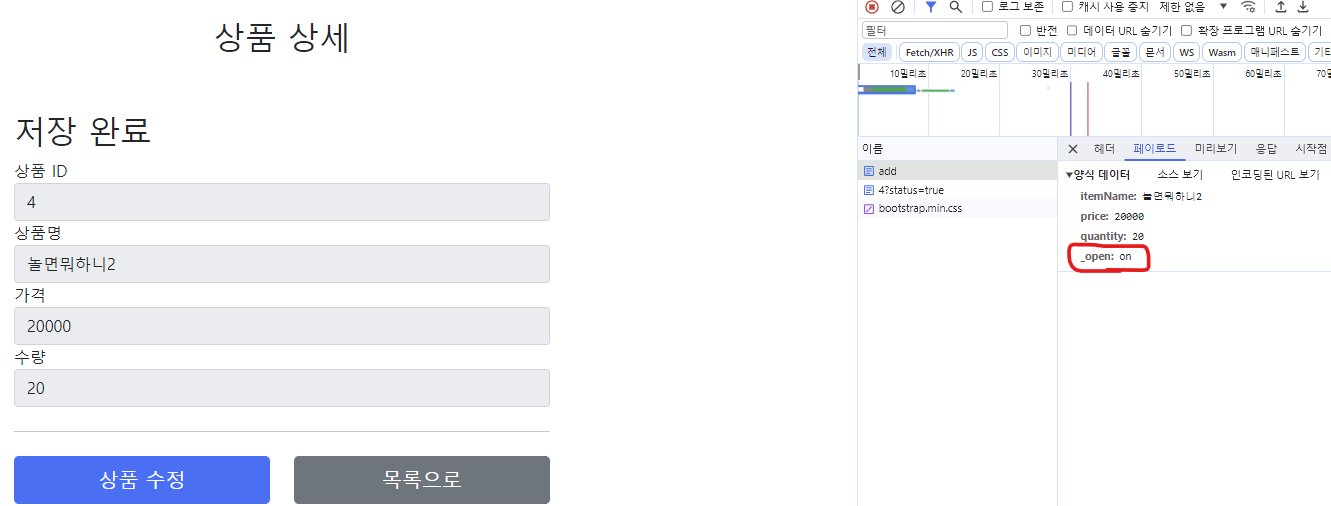 상품이 등록되는 곳에 다음과 같이 로그를 남겨서 값이 잘 넘어오는지 확인