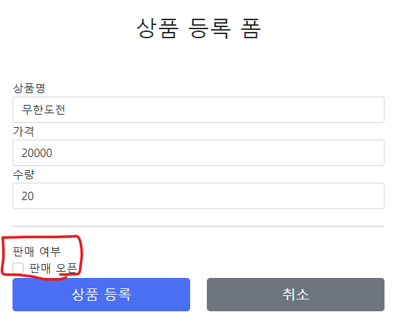 public String addForm(@ModelAttribute Item item, Model model) { // 추가