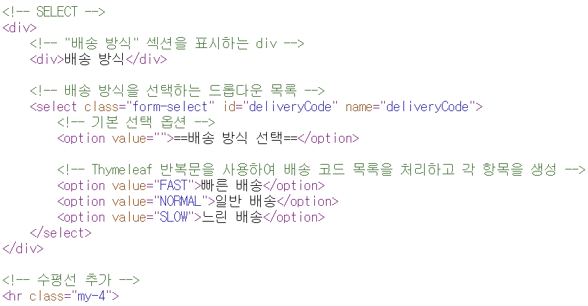 <!-- Thymeleaf 반복문을 사용하여 배송 코드 목록을 처리하고 각 항목을 생성 -->
