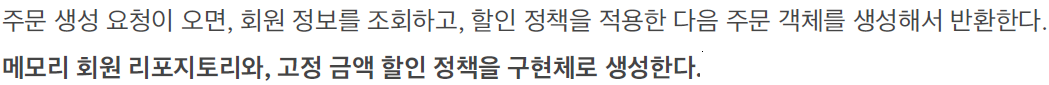 return new Order(memberId, itemName, itemPrice, discountPrice);