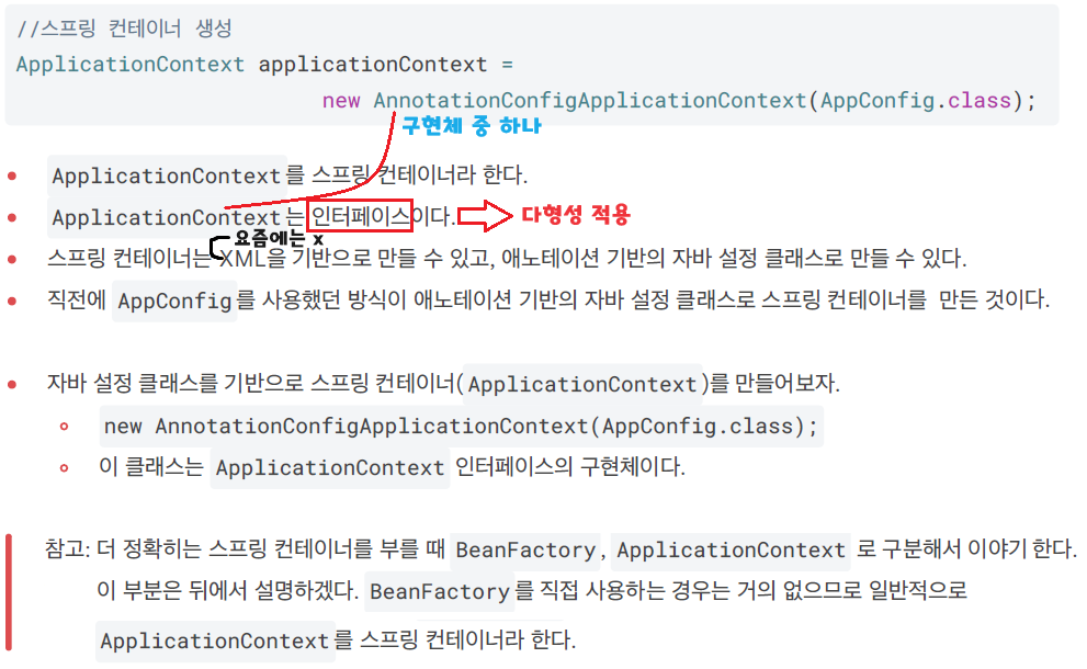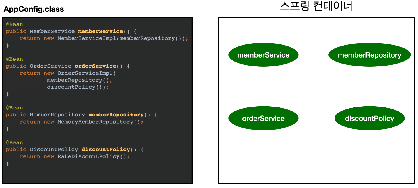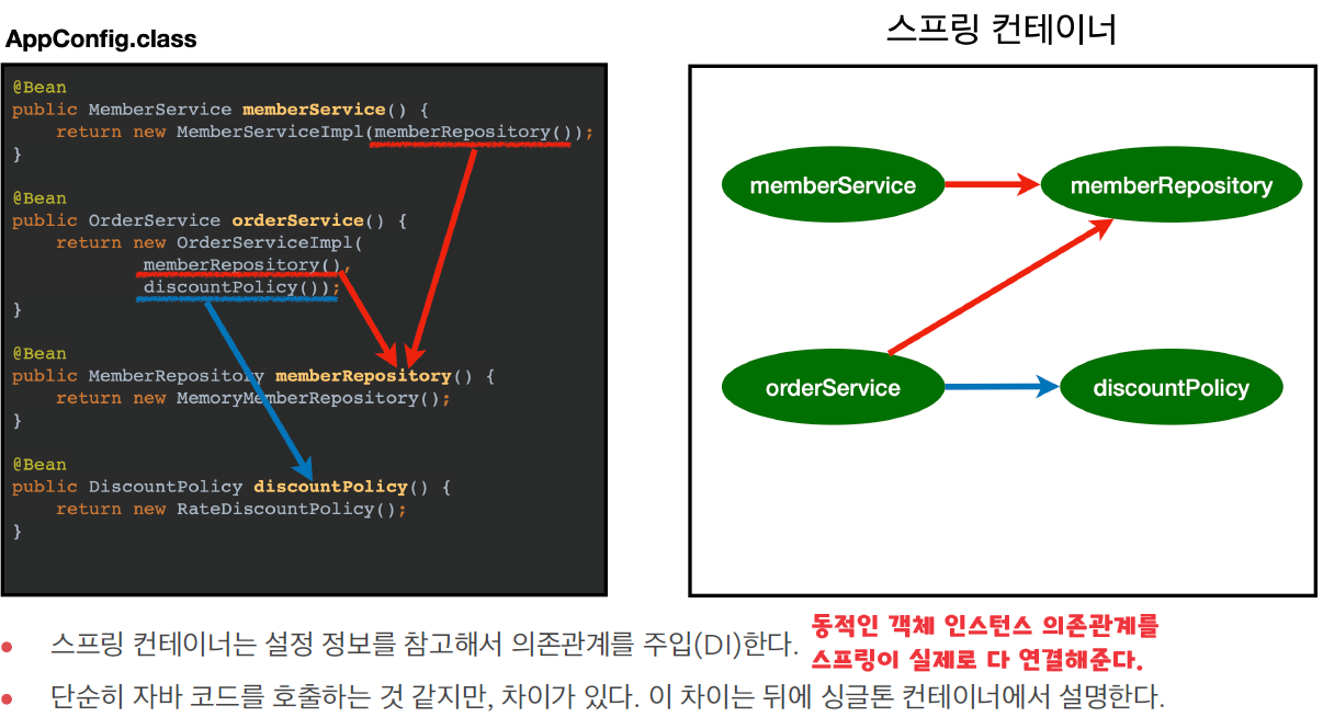 - 여기서는 이해를 돕기 위해 개념적으로 나누어 설명했다. 자세한 내용은 의존관계 자동 주입에서 다시 다룬다.