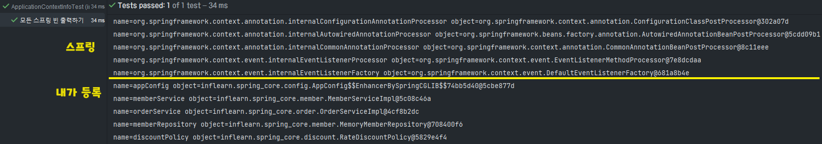 @DisplayName("모든 스프링 빈 출력하기")