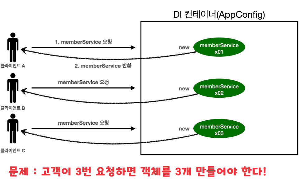 @DisplayName("스프링 없는 순수한 DI 컨테이너")