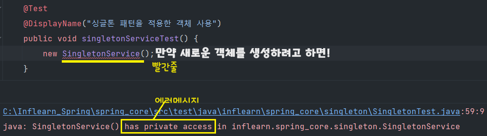 @DisplayName("싱글톤 패턴을 적용한 객체 사용")