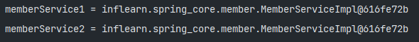 assertThat(memberService1).isSameAs(memberService2); //이건 값이 같음을 검증해야 하므로