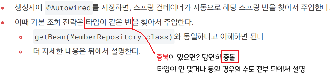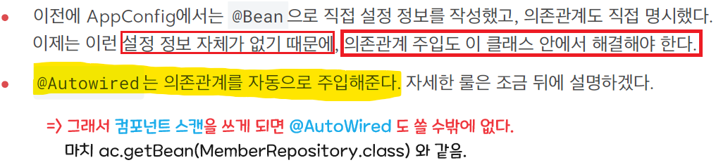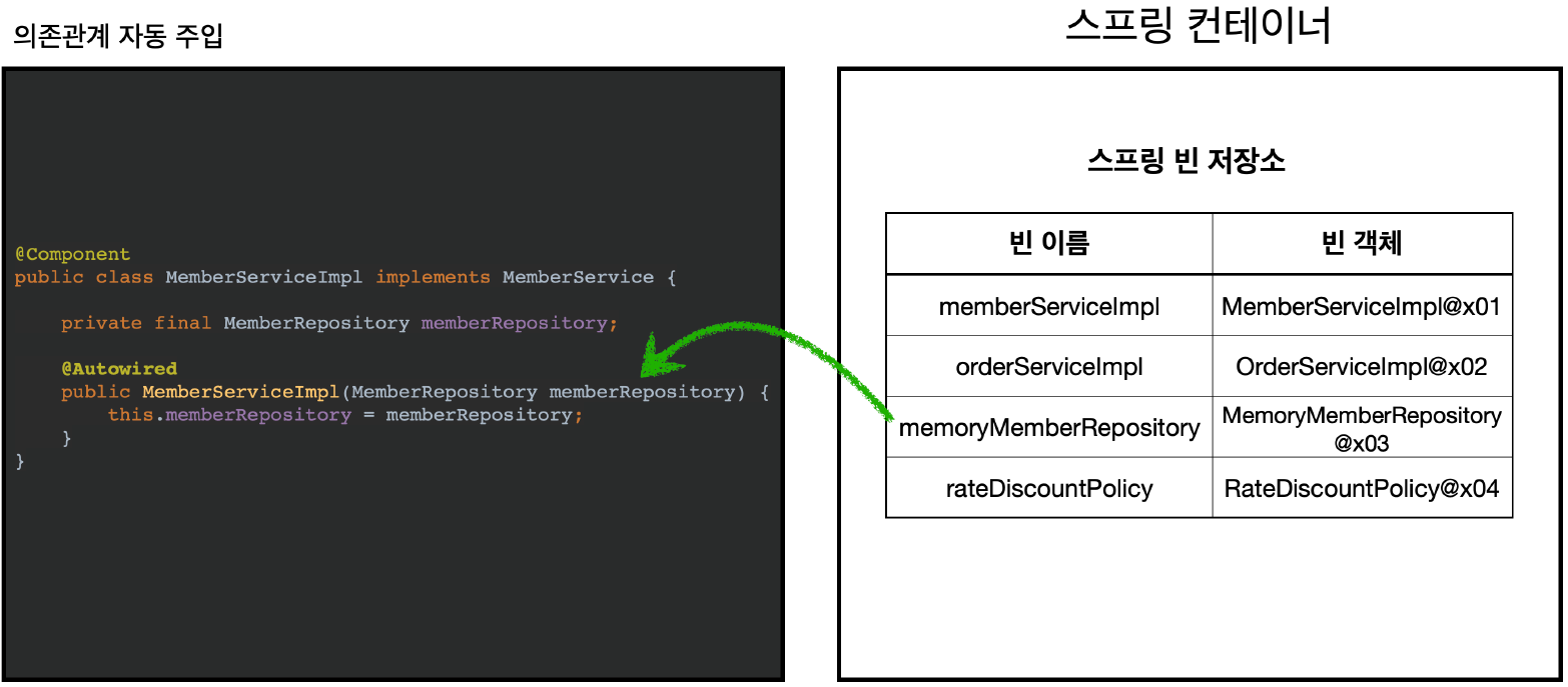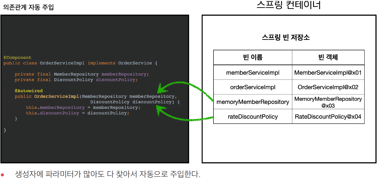 - 의존관계도 자동으로 주입하는 `@Autowired` 라는 기능도 제공한다.