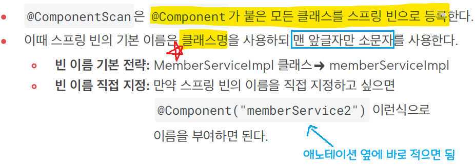- 그래서 스프링은 설정 정보가 없어도 자동으로 스프링 빈을 등록하는 컴포넌트 스캔이라는 기능을 제공한다.
