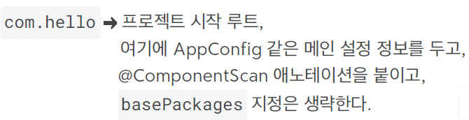 모든 자바 클래스를 다 컴포넌트 스캔하면 시간이 오래 걸린다.