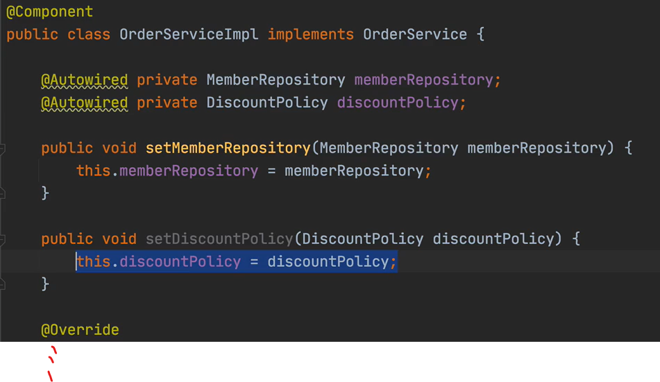public OrderServiceImpl(MemberRepository memberRepository, DiscountPolicy discountPolicy) {