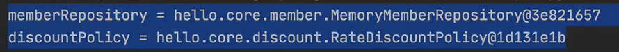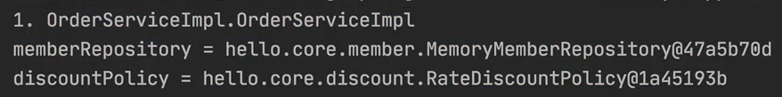 여기 memberRepository와 discountPolicy는 다 똑같은 값이 의존관계 주입 된다.