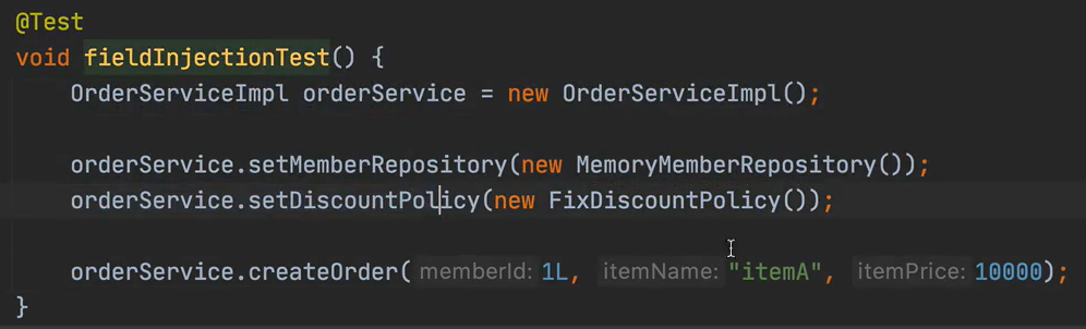 new OrderServiceImpl(memberRepository, discountPolicy)