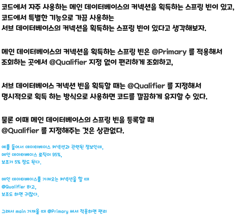여기까지 보면 @Primary 와 @Qualifier 중에 어떤 것을 사용하면 좋을지 고민이 될 것이다.