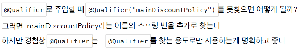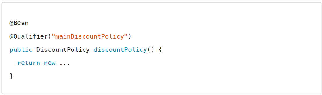 @Qualifier("mainDiscountPolicy") DiscountPolicy discountPolicy) {