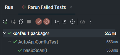 물론 전체테스트 돌리면, xmlAppContext() 메서드는 실패가 나온다.