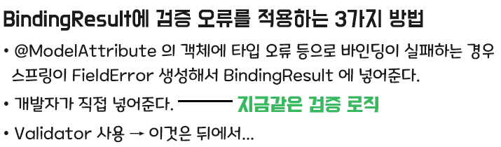 - BindingResult는 검증할 대상 바로 다음에 와야한다. 순서가 중요하다.