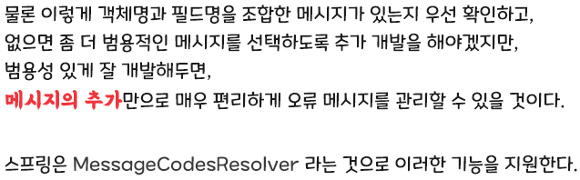 그런데 오류 메시지에 required.item.itemName 와 같이 객체명과 필드명을 조합한 세밀한 메시지 코드가 있으면