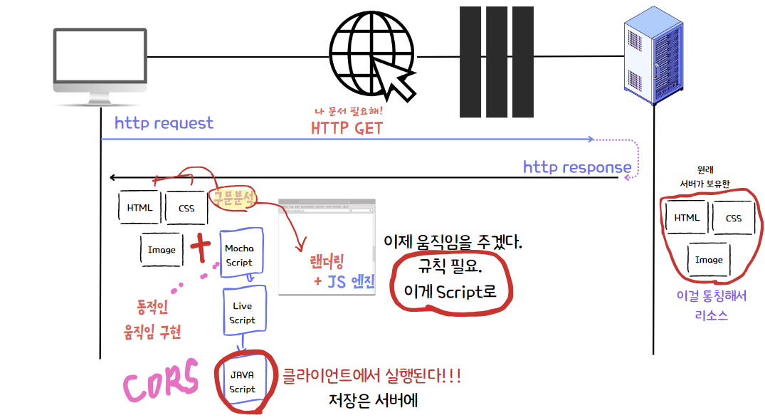 - 자바스크립트가 중요한 것은! 저장은 서버에 되지만, 클라이언트에서 실행된다는 것이다!!