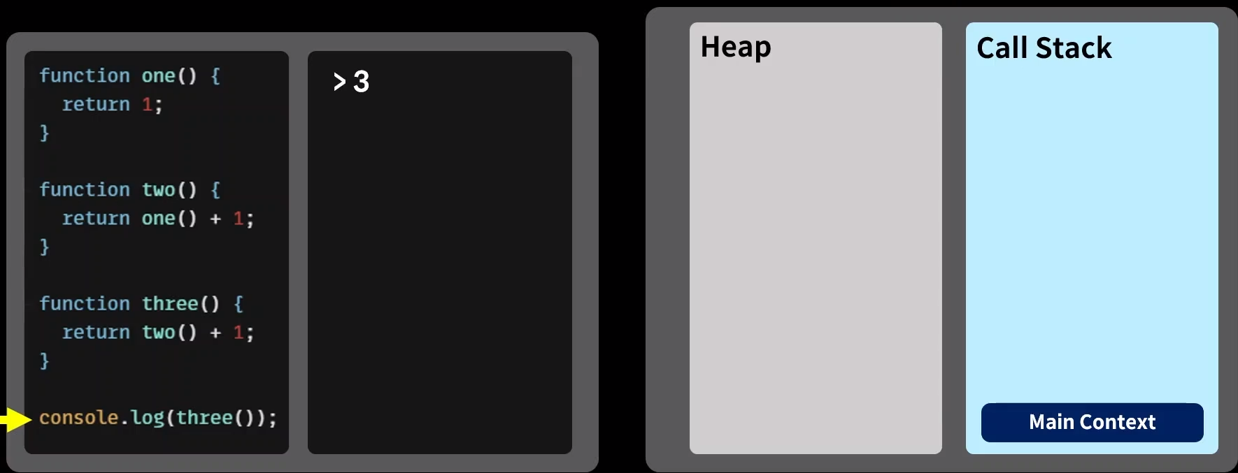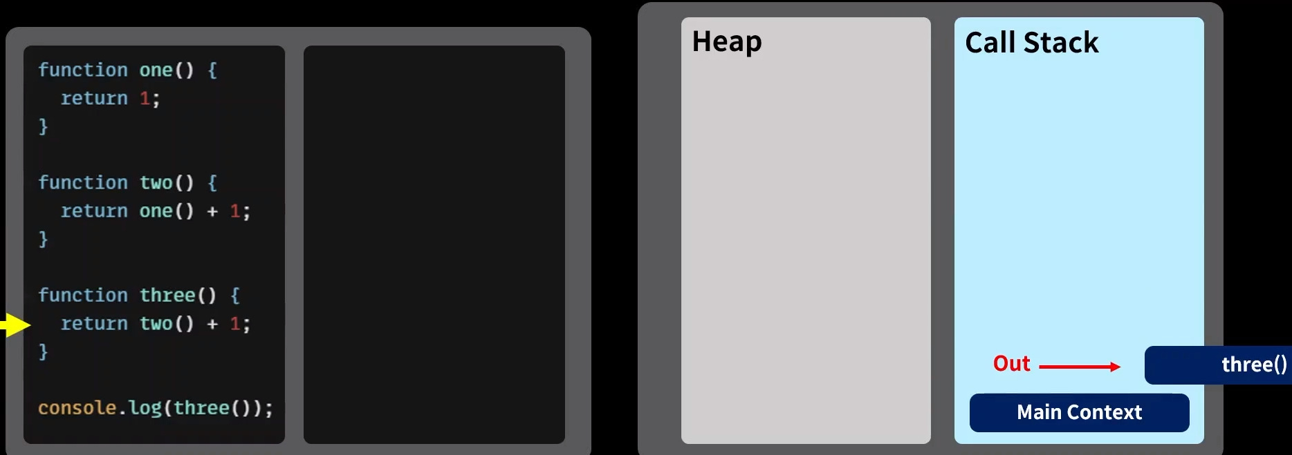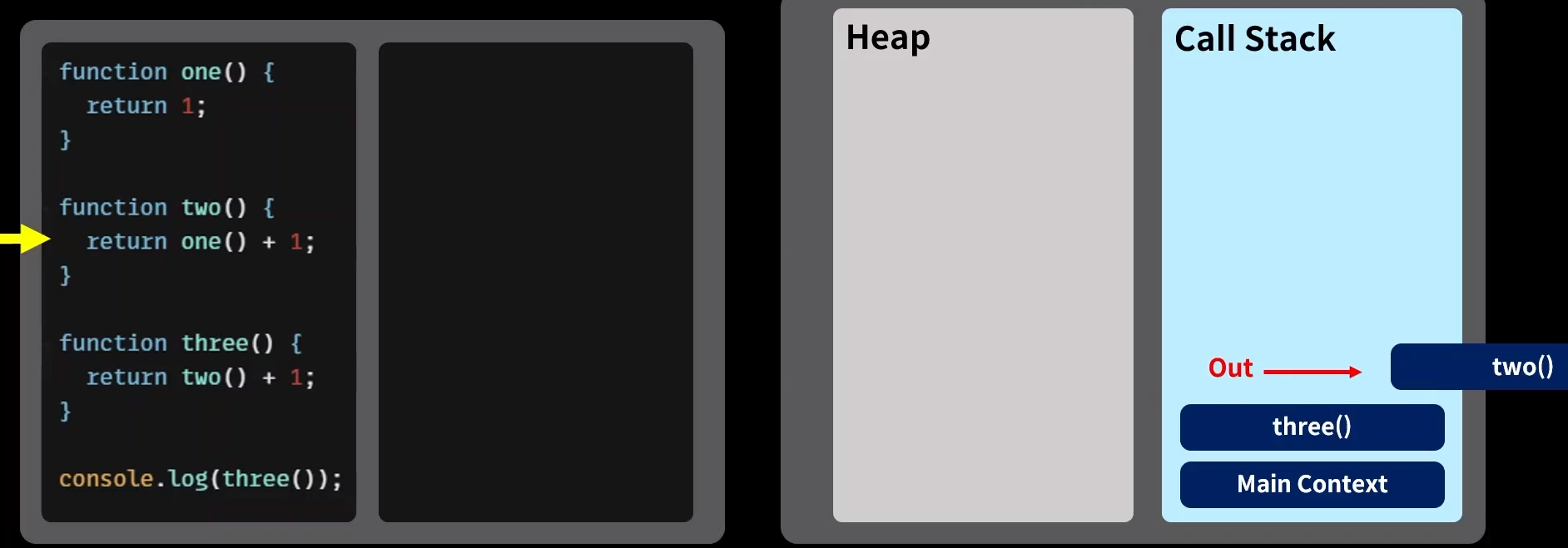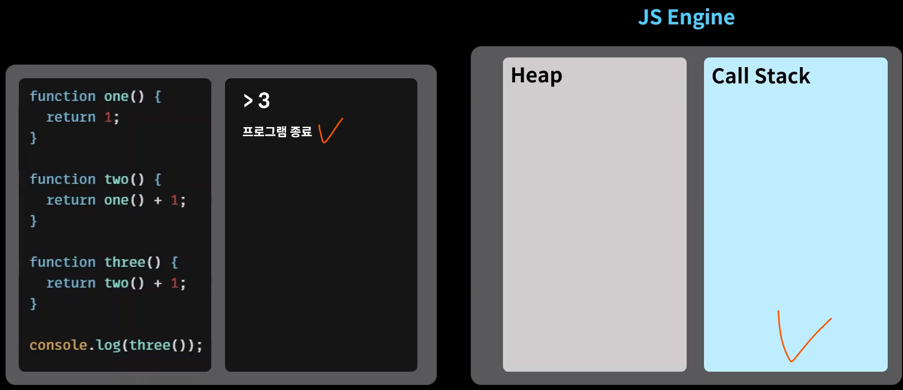 가장 마지막에 들어온 one() 함수가 가장 먼저 종료되고 가장 먼저 제거된다.