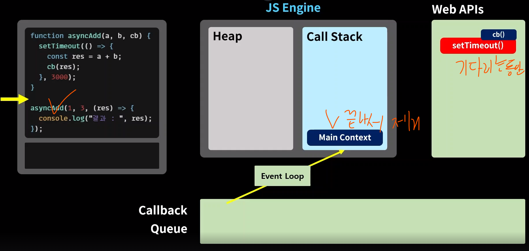 그럼 어떻게 자바스크립트 엔진은 동기적 함수와 비동기적 함수를 구분하여 사용하는가?