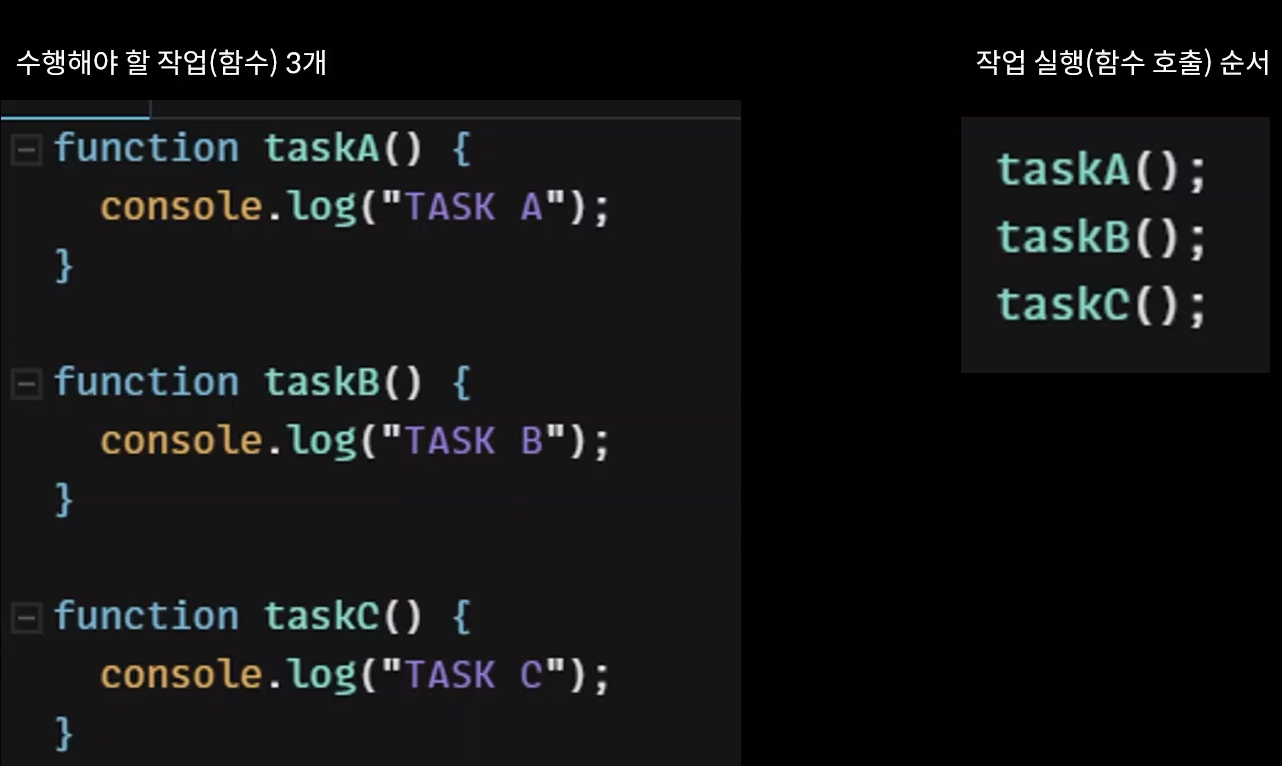 function taskA(a, b, callback) { // 파라미터와 콜백함수 추가