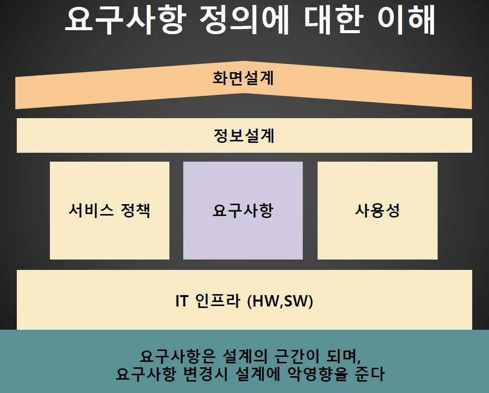 >> 인프라 위에 정책이라는 기둥이 있고, 이 정책이 기울어지면 정보 설계나 화면 설계서가 제대로 세워질 수 없다.