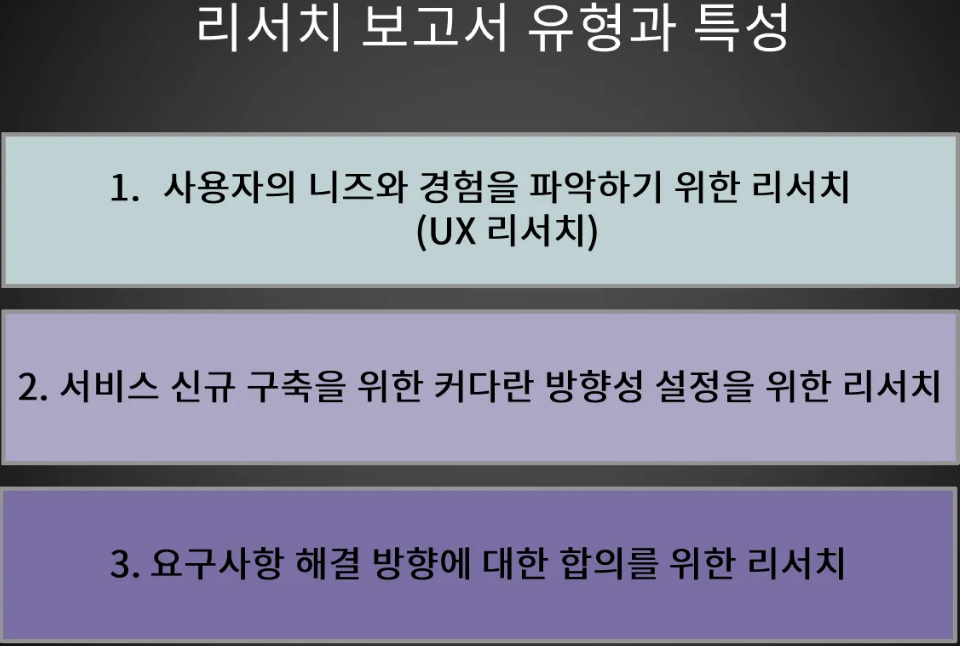- UX 리서치는 사용자의 니즈와 경험을 파악하기 위해 진행되며, 전략 단계에서 기획 방향성을 설정하는 데 중요하다.