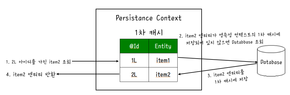 - 이는 1차 캐시에 저장된 엔티티를 조회하기 때문에 가능하다.
