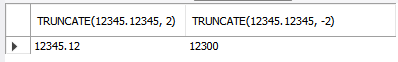 SELECT TRUNCATE(12345.12345, 2), TRUNCATE(12345.12345, -2);