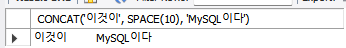 SELECT CONCAT('이것이', SPACE(10), 'MySQL이다');