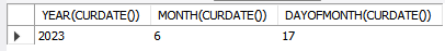 SELECT YEAR(CURDATE()), MONTH(CURDATE()), DAYOFMONTH(CURDATE());