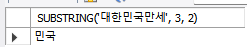 SELECT SUBSTRING('대한민국만세', 3, 2);