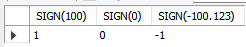 SELECT SIGN(100), SIGN(0), SIGN(-100.123);